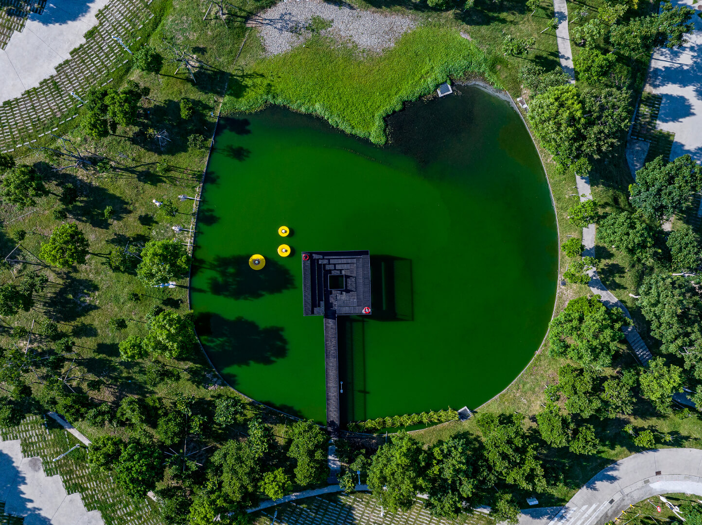 聽樹上的小鳥清唱,步伐穿梭在抹茶湖、生態池、時光草原,