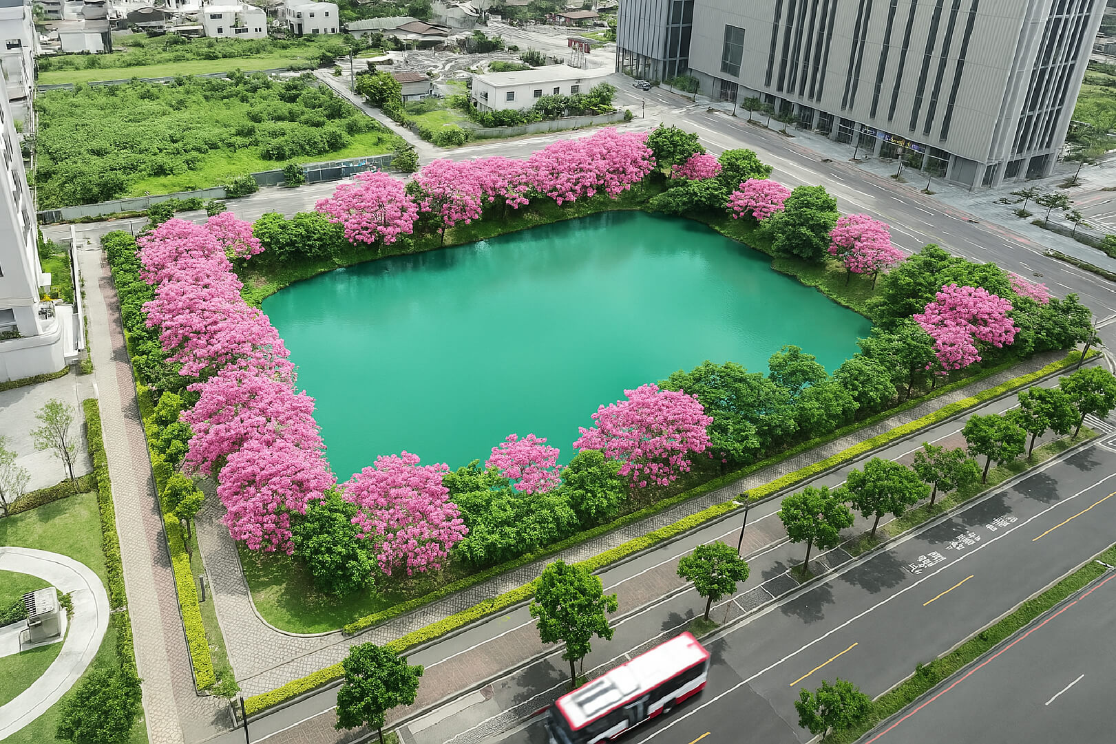 聽樹上的小鳥清唱,步伐穿梭在抹茶湖、生態池、時光草原,